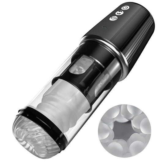 Masturbador Doble Cabezal 7 Vibraciones 5 Rotación Telescópica Mano Mamada