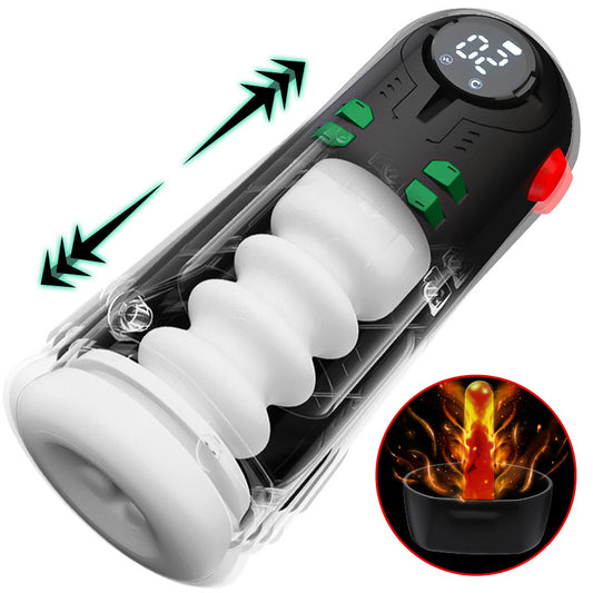 Copa de masturbación para hombre con 4 modos de estiramiento y función de calentamiento con funda ajustable para el polvo