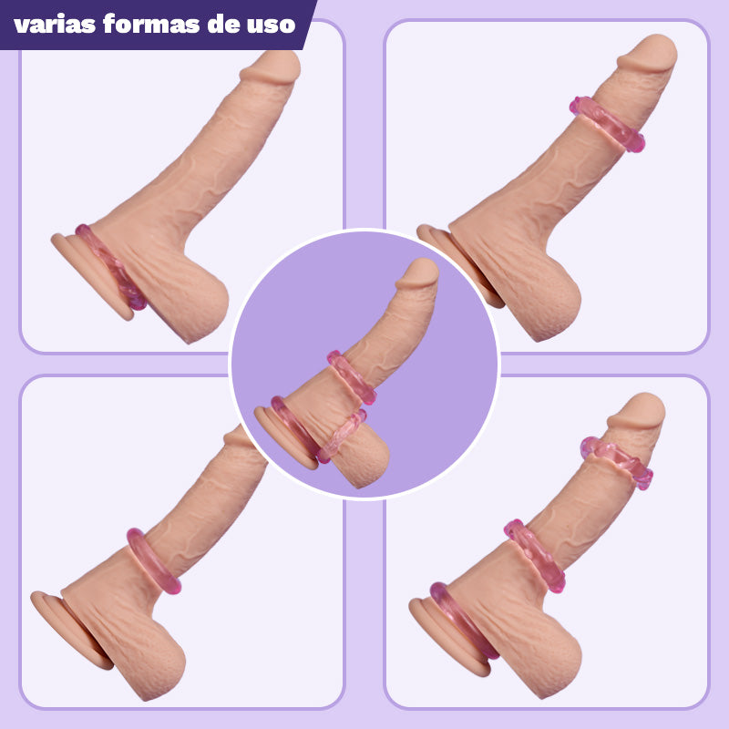 Estimulador vibratorio en forma de bola con anillos para el pene